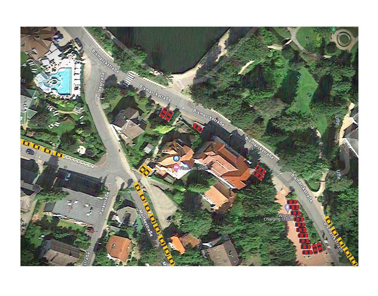 Wij beschikken zelf over 2 parkeerplaatsen op eigen terrein. Deze parkeerplaatsen bereik je vanaf het kruispunt Moltkestraße/Blücherstraße/Parkstraße. Nadat je geparkeerd hebt kan je eenvoudig de trap aflopen naar onze voordeur.